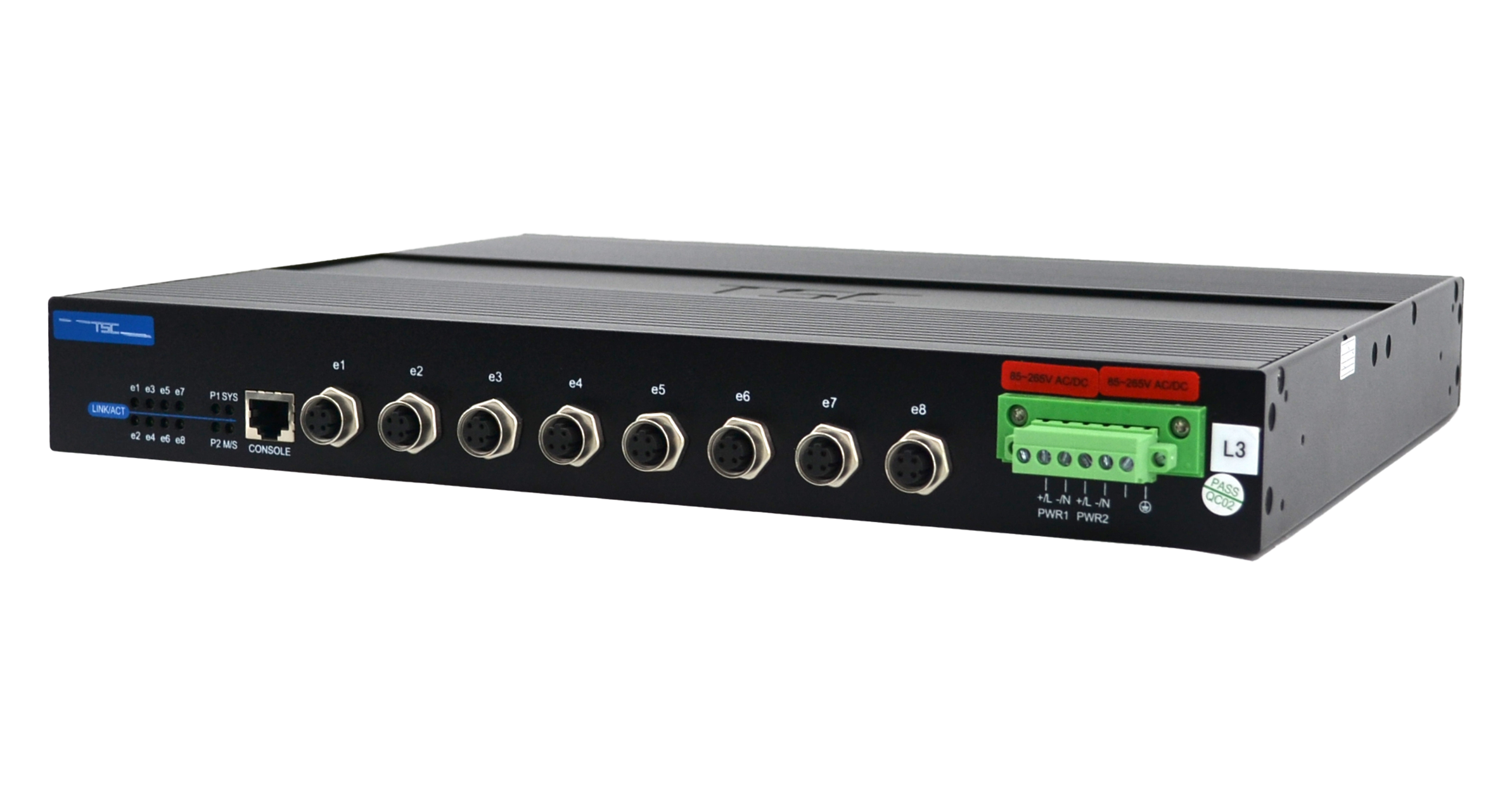 产品采用存储转发交换方式,可提供8个10/100 Base-TX M12电口。